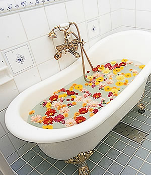 room. Please enjoy the bath by floating the flowers in either indoor bath