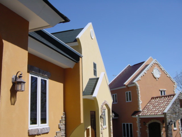 イギリスの伝統的な建物や、オレンジ色の屋根が特徴なプロヴァンスの建物などヨーロッパの街並みを、